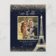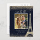Paris Eiffel Tower Navy Gold Photo Save The Date Announcement Postcard