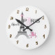 Paris Eiffel Tower Pink Poodle Chic Personalised Round Clock