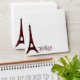 Red and black Eiffel Tower and stylised "Paris" text square envelope with black and white chandelier design interior. You can change the size and location of the Eiffel Tower and the text.