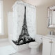 This shower curtain features a graphic of the Eiffel Tower with an old Paris map in the background.