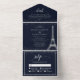 Paris Eiffel Tower Silver Glitter Sparkle Wedding All In One Invitation
