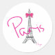 Paris Eiffel Tower with pink bow Classic Round Sticker