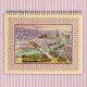 This elegant and unusual Victorian trade card image, awash in a beautiful lavender colour, describes the layout of the 1900 Expo in Paris, France. A collection of boats travel lazily along the aquamarine blue Seine. A colourful, pink-tinted sky compliments the soft lavender colours of the central illustration.
