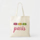 Tote bag features an original marker illustration of a delicious row of macaron cookies, with PARIS in a pink font.