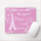 Paris France mousepads with fun French expressions written all over the mousepad you can personalise, along with a graphic of the Eiffel Tower. Pretty floral motif design and colour makes this a great gift for travelers, people who love French, France, or Europe.