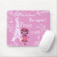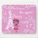 Pink girly mousepads with Paris France theme, fun French expressions written all over the mousepad you can personalise, along with a graphic of the Eiffel Tower. Pretty floral motif design and colour makes this a great gift for travelers, people who love French, France, or Europe.
