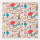 This design features a pattern with the Eiffel Tower, a girl on a bicyclewearing a beret, coffee and sweet Paris treats.