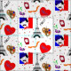A cute Paris France themed novelty fabric print with French wine, grapes, moustached man in his beret, Eiffel Tower, sausages, artists pallet, French flag and ditsy red hearts; such a fun design. Click on the image below to see similar Paris themed products and designs