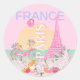 Paris, France, Travel Art, Preppy, Pastel, Pink Classic Round Sticker