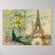 Paris France - A Travel Graphic Art Collage - this painting has lovely antique images about Paris France. This image is a graphic art design with French landmarks and Paris typography. Birds, flowers, and Parisian landmarks.