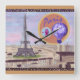 Paris France With Eiffel Tower Wall Clock, by Kristie Hubler, with pink poodle, hot air balloon, and an aerial view of Paris with the Eiffel Tower