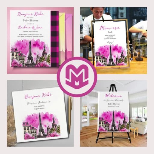 Paris French Bonjour Bebe Pink Black Baby ShowerDesigned by Max Marshall