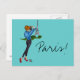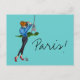 A girl in Paris taking a picture of the Eiffel Tower. "Paris!" is written across the front.