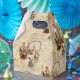 Gable style favour box with an image of brown vignettes of all things Paris on a tan and cream floral background. See the entire Cancan Favour Box collection in the PARTY FAVORS section.