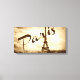 Beautiful sepia toned wrapped canvas scenic wall art features the Eiffel Tower in a vintage look