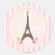 Lovely and super girly baby design featuring a brown Eiffel Tower with a pink ribbon on the top. Sweet pink flowers by the towers base, as well as pink stripes and other delicate ornaments.