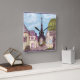 Paris inspired Cityscape With Eiffel Tower Clock, square, like the pointillism version by Kristie Hubler, inspired by Paris, France and Paris Las Vegas resort's shopping facades