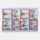 3 Paris cityscapes and the Eiffel Tower, repeated twice, inspired by both the real Paris, France and Paris Las Vegas' retail area. With light periwinkle border. Art created by Kristie Hubler