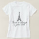 Black and white design illustrated by the famous eiffel tower and written on handwritten stylish font "Paris is always a good idea".