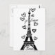 PARIS JE T'AIME EIFFEL TOWER AND HEARTS PRINT POSTCARD