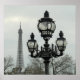 Paris Lamp Post and Eiffel Tower Scene in Winter Poster