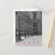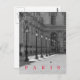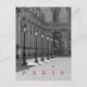 A beautiful black and white photograph of lampposts in the courtyard of the Louvre Museum in Paris printed on a postcard.