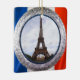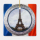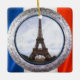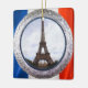 The iconic Eiffel Tower inside a silver ring, with the flag of France in the background, all rendered in an Impressionist style.