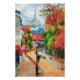 Impressionist reproduction, Montmartre, Paris, France. Rue de l'abreuvoir in autumn. You can see the dome of the Sacré-Coeur in the background
