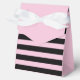 A beautiful favour box created with pale pink and black stripes. It ties together with a beautiful ribbon of your colour choice.