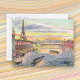 The Exposition of 1900 brought the world to Paris to see and experience this wonderful event. Many illustrations were made to commemorate this exciting time. This image, from a postcard of the period shows the city in soft, hazy pastel colours. The Pont Alexandre III is in the foreground with boats and barges gliding along the river guided by the lights of the exposition. The calm, relaxing colours are perfect for home decor, personal correspondence and gift ideas.
