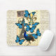 Pretty chic elegant romantic feminine digital collage of a peacock bird and blue butterflies and eiffel tower , Paris, France on a vintage paper postcard background and French stamp with gold fleur de lys. copyright Oconnart