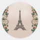 Paris Pink Rose Vines Eiffel Tower Elegant Classic Round Sticker
