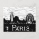 Black and White Postcard of Paris skyline with Ferris Wheel and Eiffel Tower