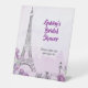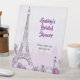 Give information to your guests with this pretty purple watercolor tabletop pedestal sign that is perfect for a Paris themed special event. The Eiffel Tower is surrounded by lovely purple irises with a Parisian skyline silhouette in the background. Use for a Parisian bridal shower, baby shower, birthday party, engagement party, wedding, or other chic occasion. Customise to welcome guests or as informational signs at a French or Parisian celebration including a birthday party, bridal or couple's shower, reception only wedding celebration, bachelorette or bachelor party, or other event for the Francophile. Available with matching products.