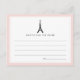Collect words of wisdom and advice for the bride to be with these sweet cards. Chic blush pink and black design features an Eiffel tower silhouette illustration and "advice for the bride" at the top. Customise with the bride's name if desired, and place a stack at the entrance to the event, pass them around, or leave one at each place setting. Makes a beautiful keepsake for the bride when compiled in a book, memory box or binder!