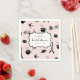 Designed to coordinate with our Paris Romance bridal shower invitation and accessory collection, these chic blush pink and white napkins feature a background pattern of Eiffel Tower silhouettes, macarons, bicycles, croissants, roses, birds and coffee cups, with the guest of honor's name, event type and date in the center.