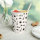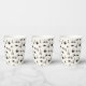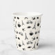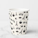 Chic Paris inspired paper cups feature a pattern of tiny birds, croissants, macarons, roses, coffee cups, and of course, the Eiffel tower, in black and white on a pale cream background, for a sweet and whimsical take on the timeless city.