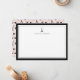 Our chic Parisian inspired personalized stationery flat cards feature a classic black border, a tiny black Eiffel tower illustration, and your name, monogram or choice of personalization. Cards reverse to our Paris Romance pattern, with tiny birds, croissants, macarons, roses, coffee cups, and the Eiffel tower on a pale blush pink background.