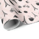 Add Parisian flair to all your gifts with our chic Paris patterned wrapping paper in blush pink and crisp black. Design features tiny birds, croissants, macarons, roses, coffee cups, and of course, the Eiffel tower, in black and white on a pale blush background, for a sweet and whimsical take on the timeless city.