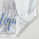 Delicate blue flowers on an drawings of Parisian architectural landmarks (Arch of Triumph and the Eiffel Tower).