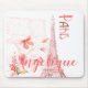 Paris Scene and Pink Flowers Custom Mouse Pad