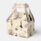 Gable style favour box with an image of chic ladies and prominent landmarks in Paris on tan. There’s the L’arc de Triumphe, the Eiffel Tower and the beautiful Basilica of the Sacre Coeur on Montmartre. See the entire Cancan Favour Box collection in the PARTY FAVORS section.