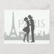 Paris Skyline Eiffel Tower Couple Love Grey, White Postcard