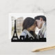 This custom photo card features a black silhouette of the Paris skyline, to include the Eiffel tower. Add your own photo behind the skyline!