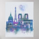 Paris Skyline Watercolour Splash Blue by Fab Funky. Features famous landmarks of Paris in a watercolor style.