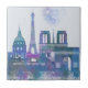 Paris Skyline Watercolour Splash Blue by Fab Funky. Features famous landmarks of Paris in a watercolor style.