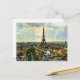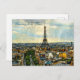 Aerial view of the Paris skyline with the Eiffel Tower. Watercolor style illustration.