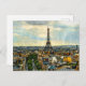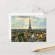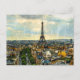 Aerial view of the Paris skyline with the Eiffel Tower. Watercolor style illustration.