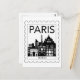 Minimalist Paris stamp design featuring the Eiffel Tower, Arc de Triomphe, and iconic French landmarks. A stylish black and white cityscape graphic perfect for travel lovers, Paris souvenirs, and modern wall art.