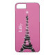 Sparkling twinkle lights decorate the Eiffel Tower on this cute and pink Paris inspired iPhone 7 case. This case is further decorated with your name, monogram or Paris if you prefer.